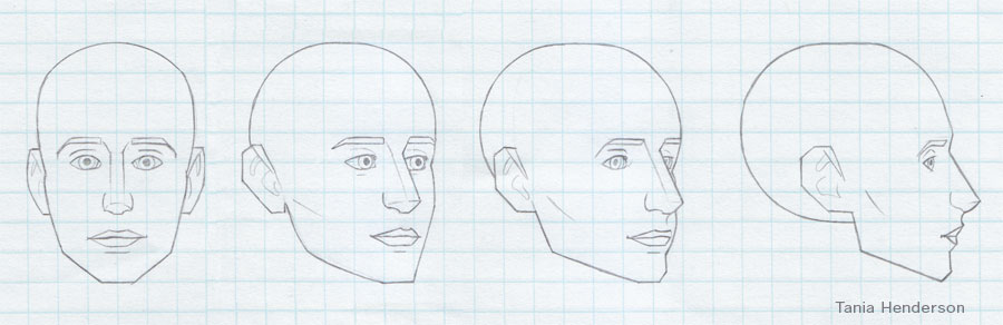 I measured out where the pupils and mouth should be better on the new one, thickened the eyebrows, moved the tail of the eyebrow up and back, rounded the jaw, and disconnected the ear.